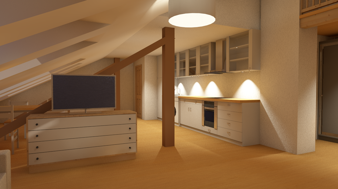 Investor se po konzultaci se statikem rozhodl odstranit šikmé vzpěry a sloupky krovu, se kterými bylo v návrhu a vizualizacích počítáno.