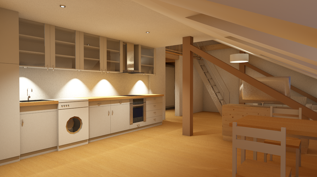 Návrh dispozice řeší výškové poměry v nově navrhovaném podkroví a možné uspořádání místností. Návrh neurčuje materiálové řešení interiéru, ani jeho konkrétní vybavení.