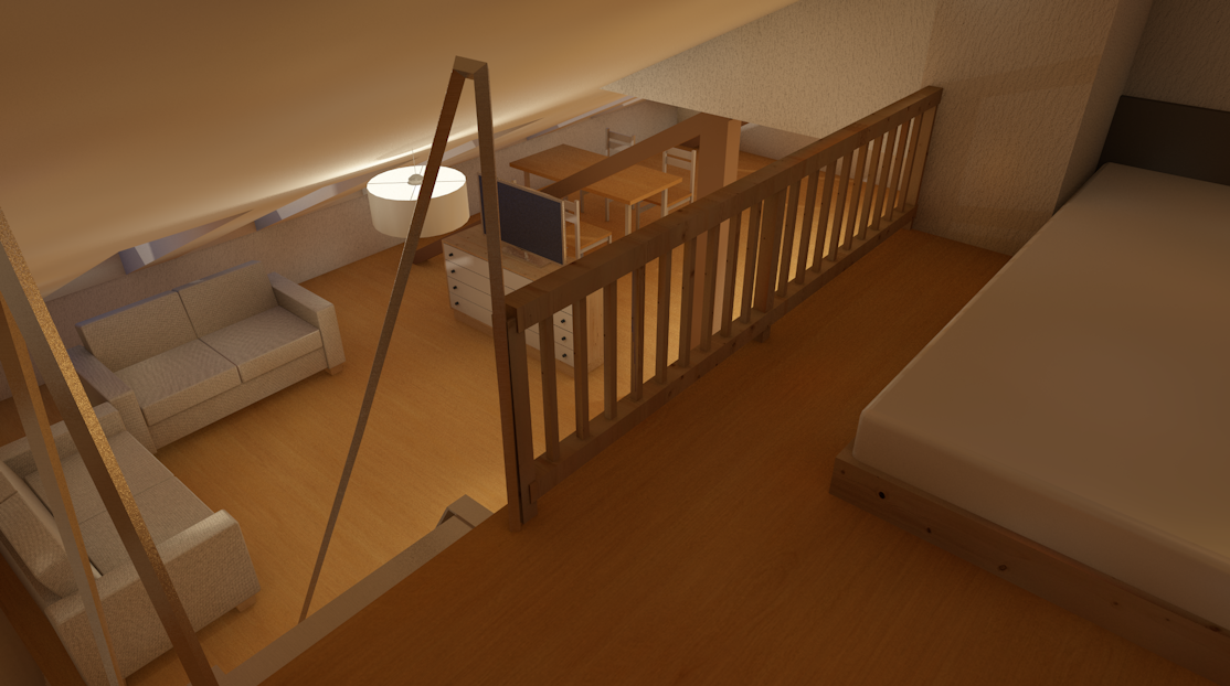 Klíčové bylo dostat do bytů dostatek denního světla. Zajímavým prvkem interiéru je vzdušná ložnice nad zádveřím, která svou polohou v mezipatře ušetřila prostor v denní místnosti.